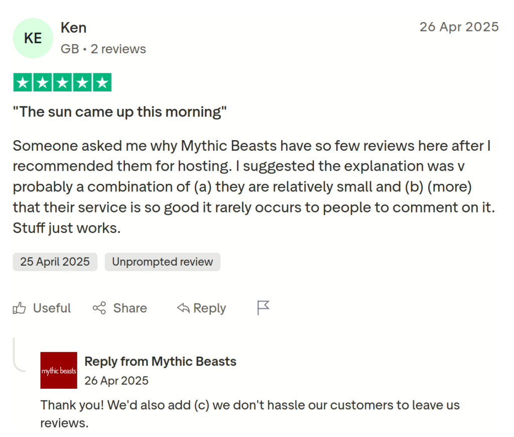 As we’ve written about previously, we’ve seen a huge increase in the amount of abusive bot traffic hitting our web servers — much of it badly behaved AI scrapers — and frequently the volume of traffic is such that it overwhelms the server, and makes websites unavailable. At times we’ve seen over 95% of traffic coming from AI scrapers. Our Web and Email Hosting service is what’s often referred to as “shared hosting” meaning that we have websites for many customers on a single server. This is a very cost effective way to provide web hosting, but it does mean that any load issues caused by traffic to one website can affect other sites on the same server.